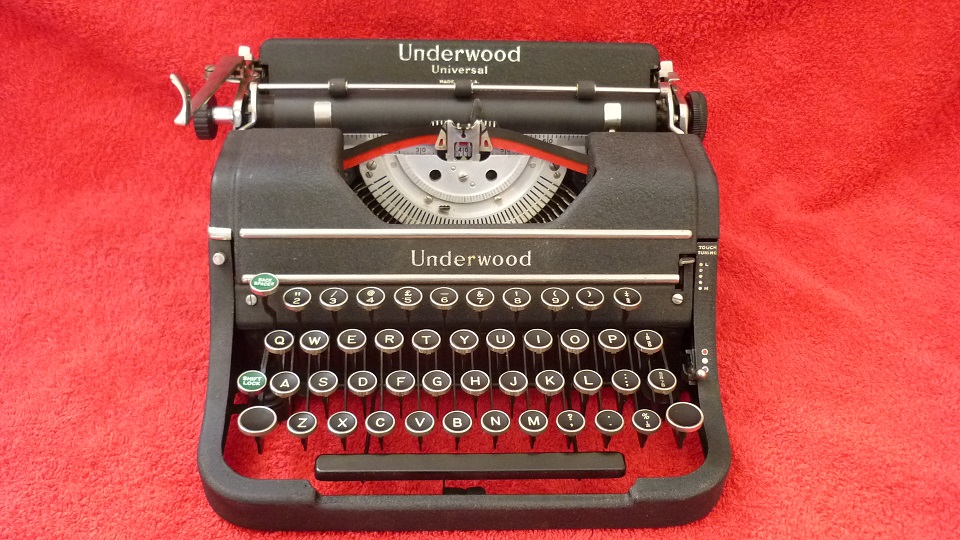 The Underwood Five – made from the turn of the last century until 1933, and then (in modified form) as the Underwood Six for several more years – is one of the most common ‘vintage finds’. Hardly surprising, because in its time it had nearly 50% of the total typewriter market. In fact, Underwood’s salesmen were told that if a potential customer wasn’t sure if they should buy one, they should ask them to ring any local firm and enquire which make of typewriter they used in their offices. Knowing that they had such a large market share already, they had a better than even chance of the reply being ‘Underwood’ !