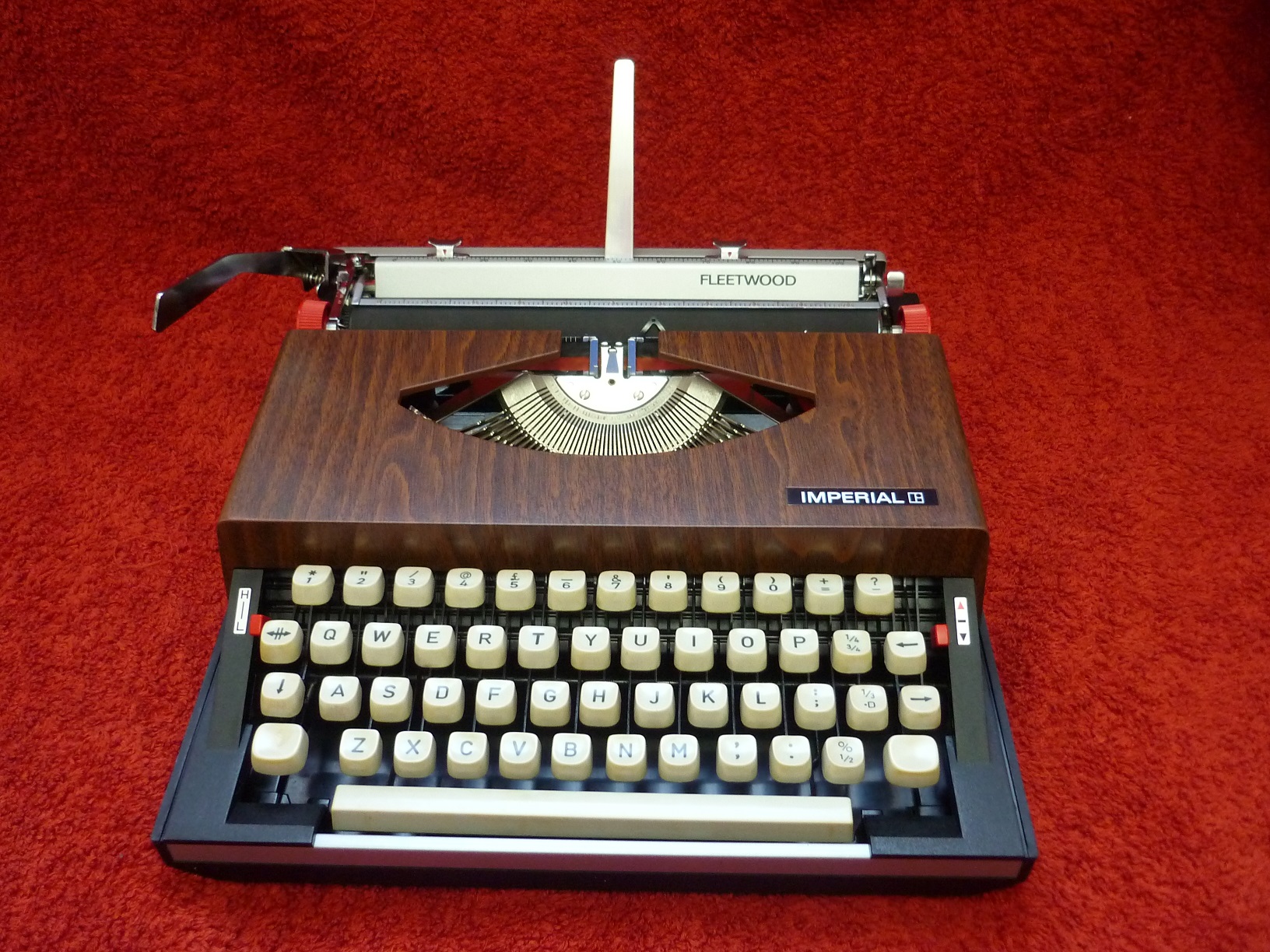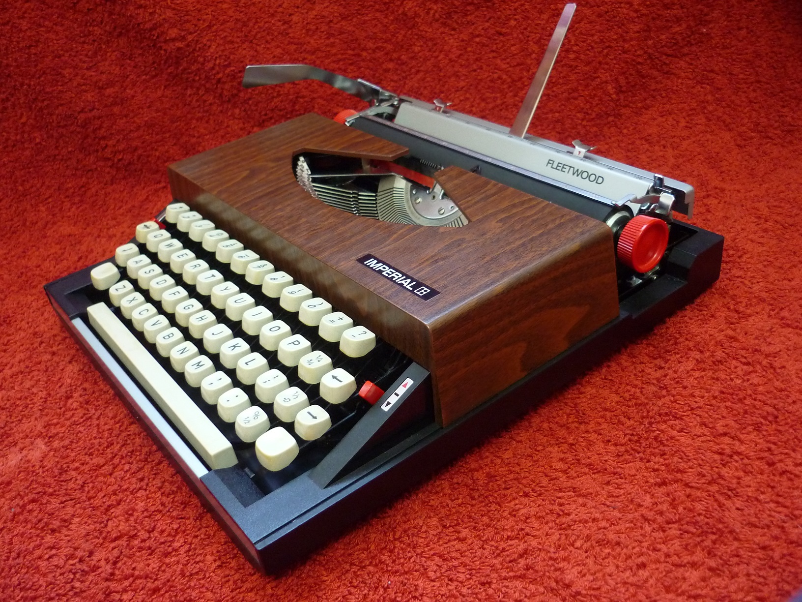 By 1972, the Imperial Typewriter Company of Leicester had been in American ownership for a decade. Litton Industries also owned the Royal Typewriter Company in the States and beginning in 1967, had decreed that both companies would concentrate on office typewriters whilst the portable machines would be made for them in Japan by Silver Seiko. The Imperial Fleetwood was produced as a result of this arrangement. Known as the 'Royal Fleetwood' in the USA and clearly designed for a market that thought that plastic woodgrain was the height of sophistication, the British version differed little other than offering a £ sign on the keyboard and an Imperial label. 'Fleetwood' must mean something upmarket to the Yanks - Cadillac named one of their car models thus after all - but to the British it conjures up images of a fishing port in Lancashire !