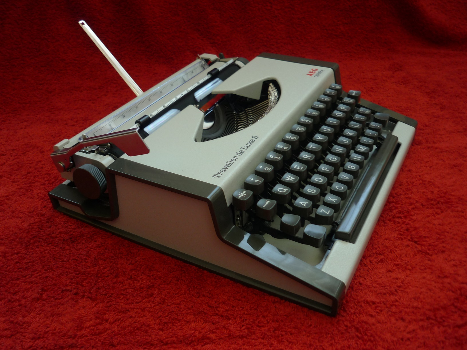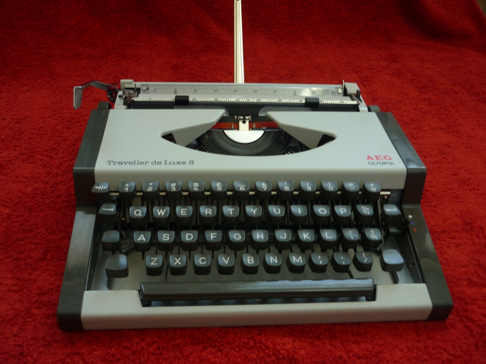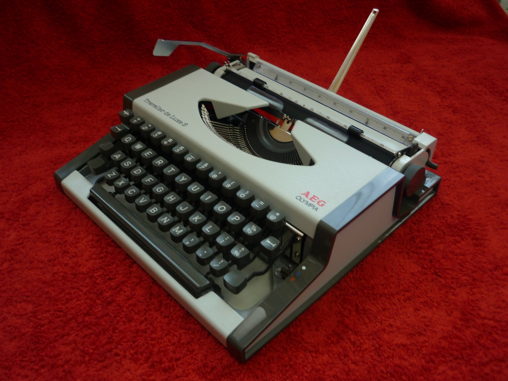 The German-designed Olympia Traveller is the final iteration of the Olympia SF, first introduced in 1955. The original SF spawned a whole series of small portable typewriters, culminating in the 1969 Traveller and Traveller Deluxe. These last models remained in production until the early 1990's and were the last good quality portable typewriters to remain on the market. The final ones were branded as 'AEG Olympia' and had the useful addition of a fixed tabulator. This particular machine is in mint condition and only needed light recommisioning before being offered for sale. It was still on the ribbon fitted by the manufacturers, which of course I replaced because after 35 years it had dried out ! I do not think that it had been used much, if at all. This is the nearest that you could get to going back to the 1990's in a time machine and buying a new one !