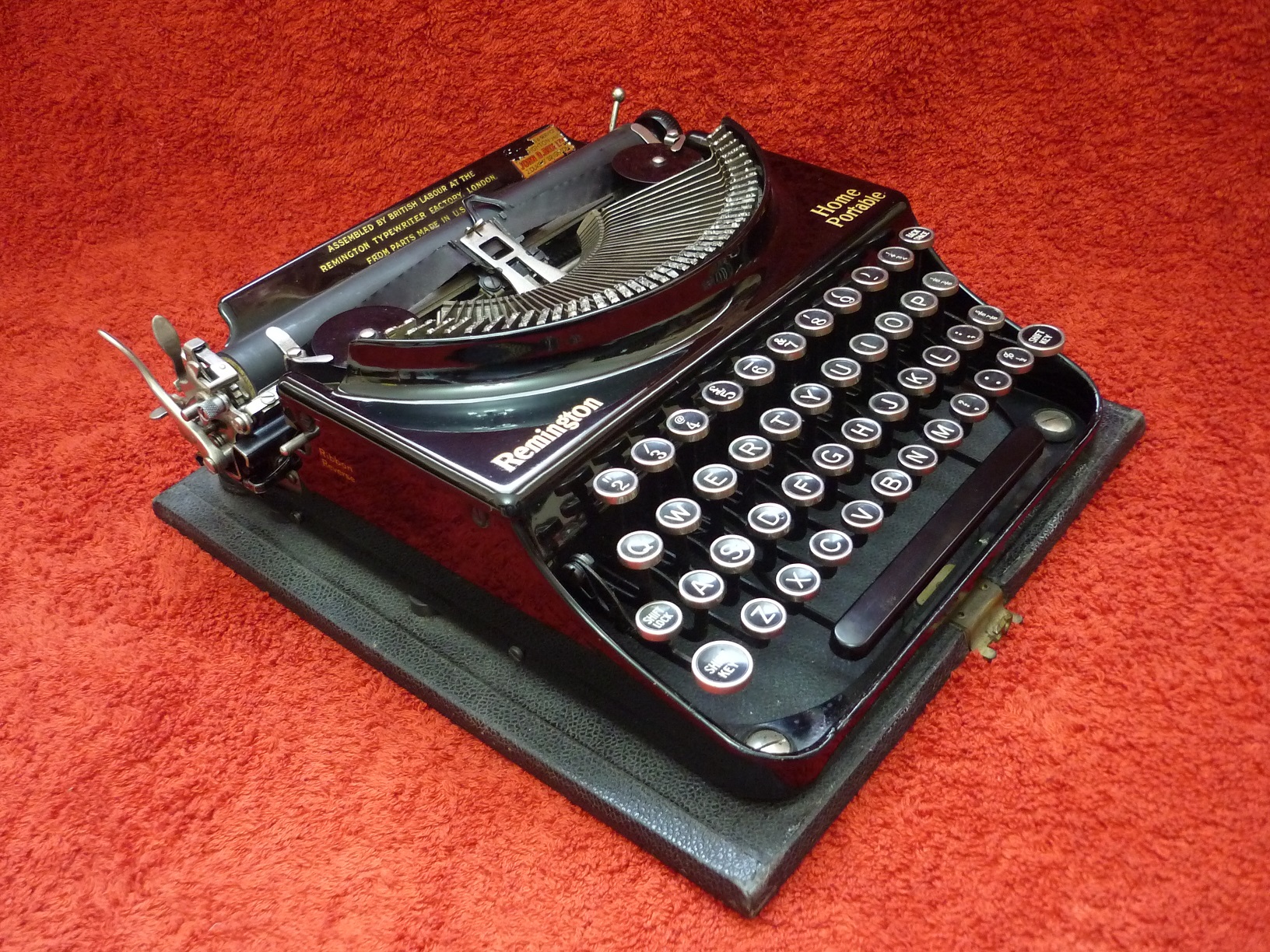 By the late 1930's, the American Remington typewriter organisation was a true multi-national with factories all over the world. This included a subsiduary in England. As well as office typewriters, Remington were a major manufacturer of portable machines too. Beginning with these in 1922, the portable range expanded into lightweight, heavy duty and even noiseless typewriters. The Remington Home Portable was the most basic of the range, devoid of all frills and intended to be competitive in price with second hand typewriters of other makes. Versions of this machine were assembled in Remington's London factory using parts sent over from America.