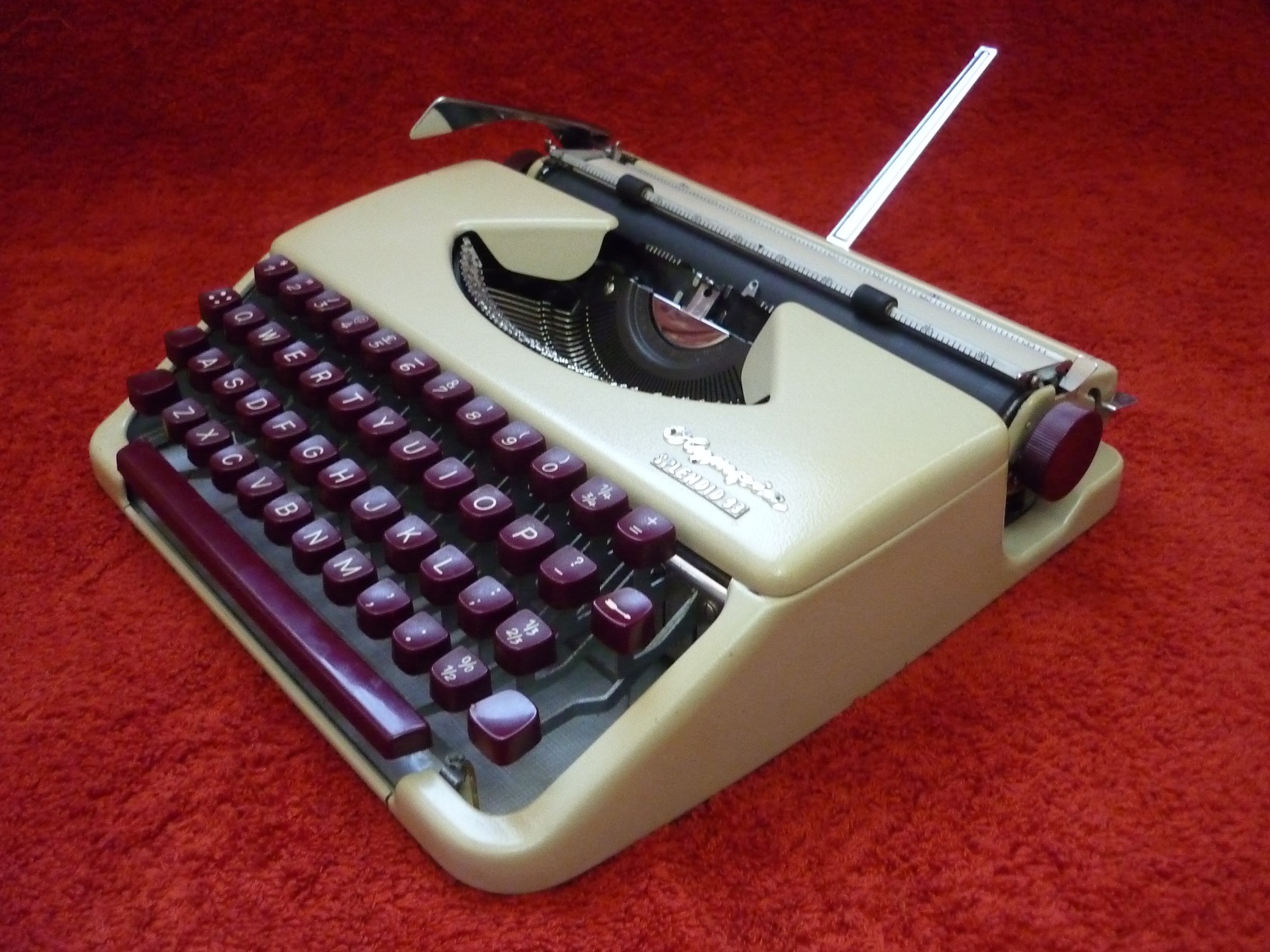 The well-respected German Olympia firm brought out their first 'flat portable' in 1956. The design proved to be so successful that it remained in production, with regular updates, into the 1990's. The original 'SF' (the initials stand for 'flat typewriter' in German) began as a very basic machine that used a single colour ribbon. This soon grew into a whole range, renamed 'Olympia Splendid', which consisted of the original basic model, one with two-colour ribbon and a keyboard touch control, and even a luxury version with all the bells and whistles !