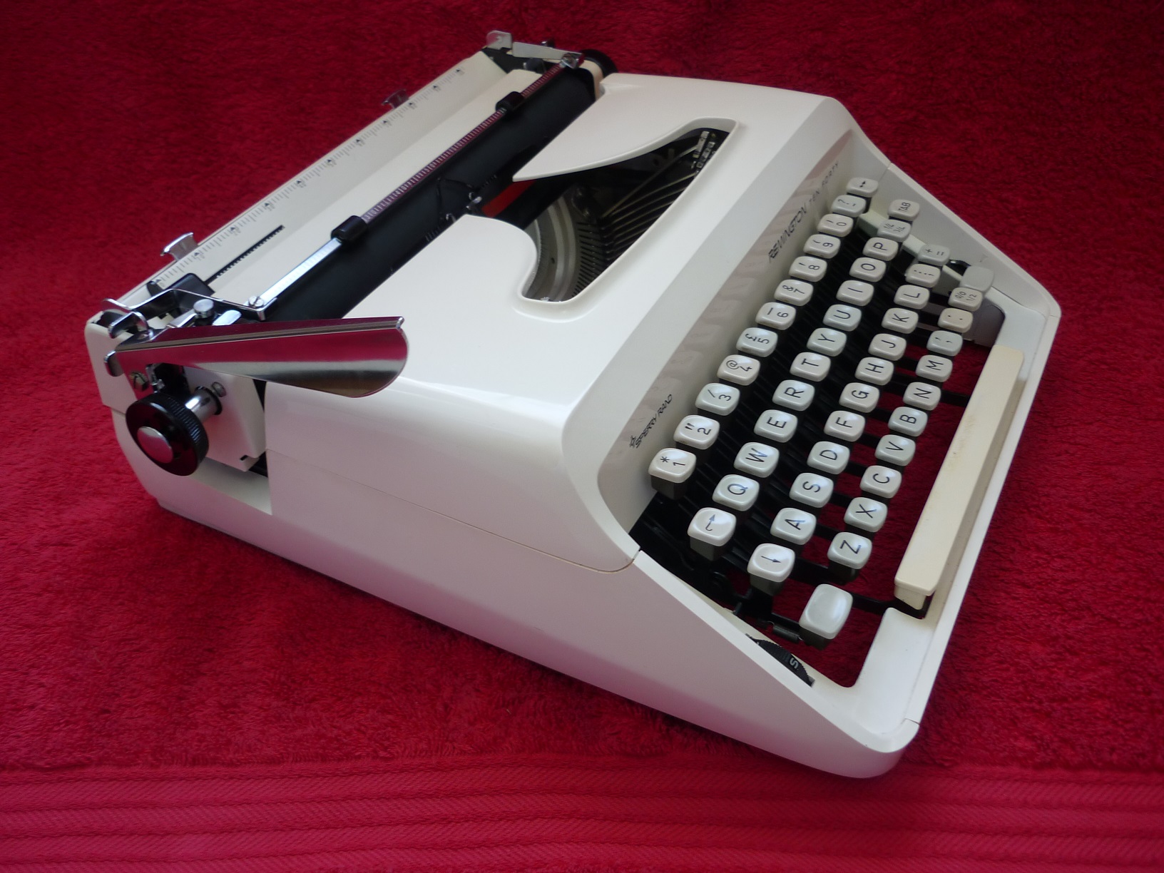 A well-specified machine, it features a 43-character keyboard, eraser table and full tabulator (handy for column work and indented papargraphs) There is also a freehead for lining up pre-printed forms and an 'under hood' keyboard touch control. This machine is a little more substantial than the many lightweight portables that are designed to simply dash off one letter a week, but nowhere near as heavy as a full desk portable for near-continuous work. It is relatively light in weight and easy to carry anywhere in its plastic case. It would make an ideal present for someone special, or simply treat yourself !