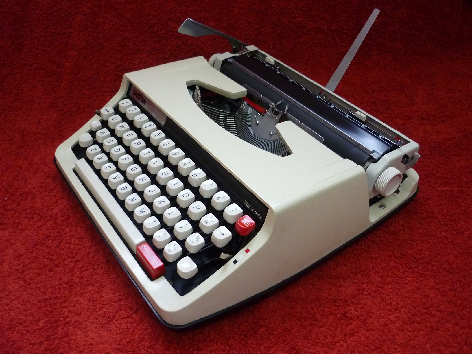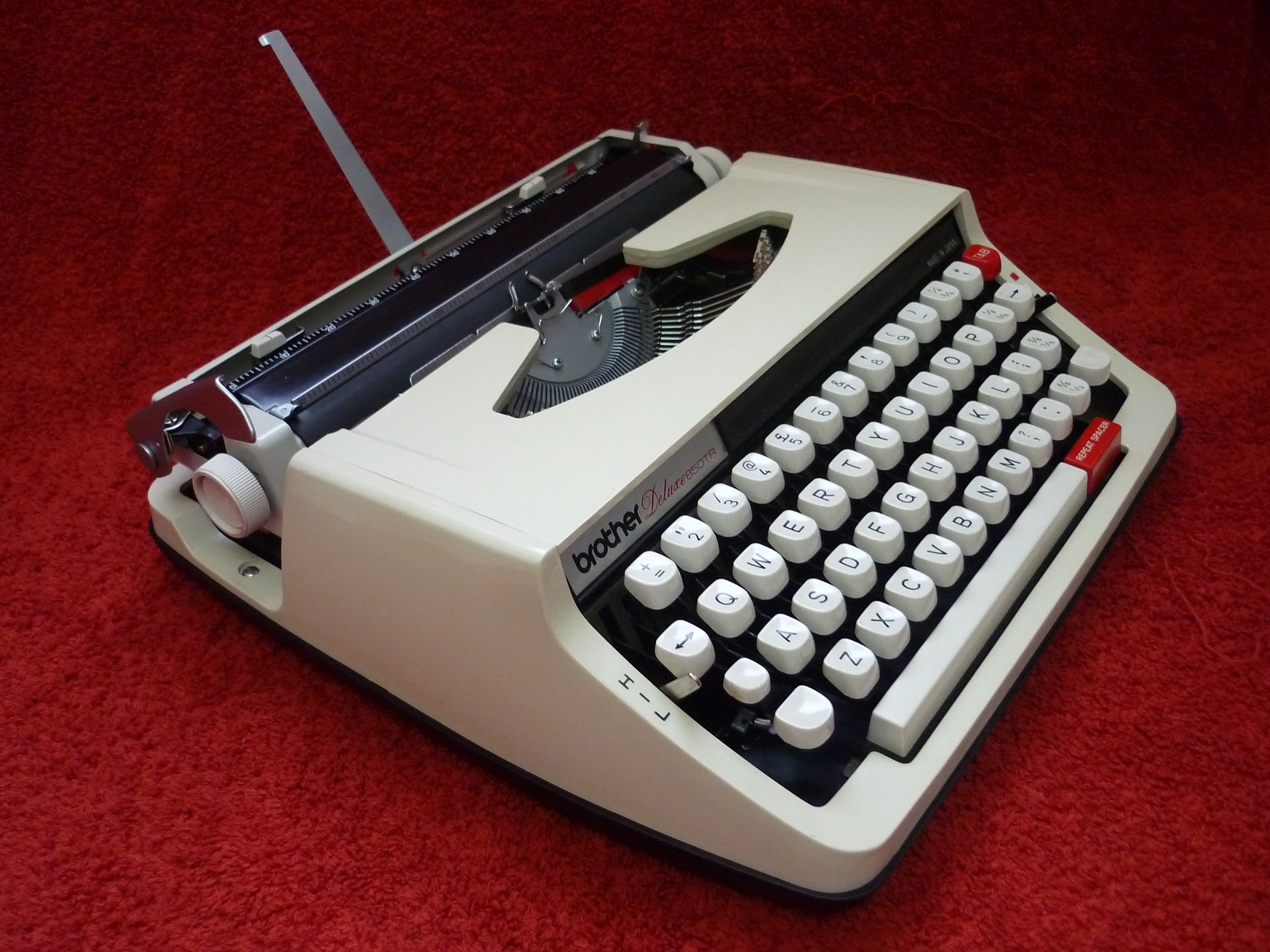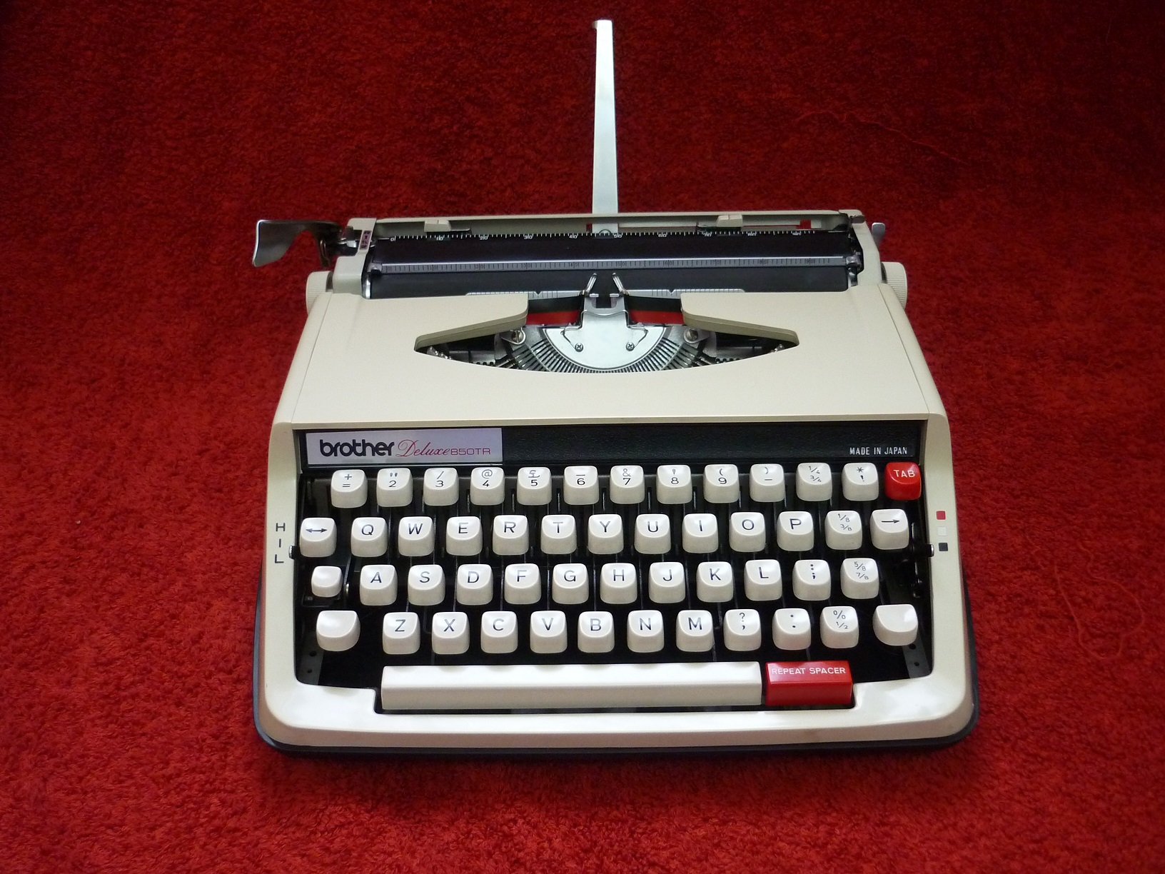 The well-known Japanese manufacturer Brother began making small portable typewriters in the early 1960's, having already established an excellent reputation as a sewing machine manufacturer. It is no surprise then, that they quickly gained a reputation for making excellent quality typewriters too. Of the three main Japanese typewriter manufacturers, Brother was always regarded as a 'cut above' the others. This Brother DeLuxe 850TR probably represents the pinnacle of their production, from a time when they were working hard to imitate the best quality German machines.
