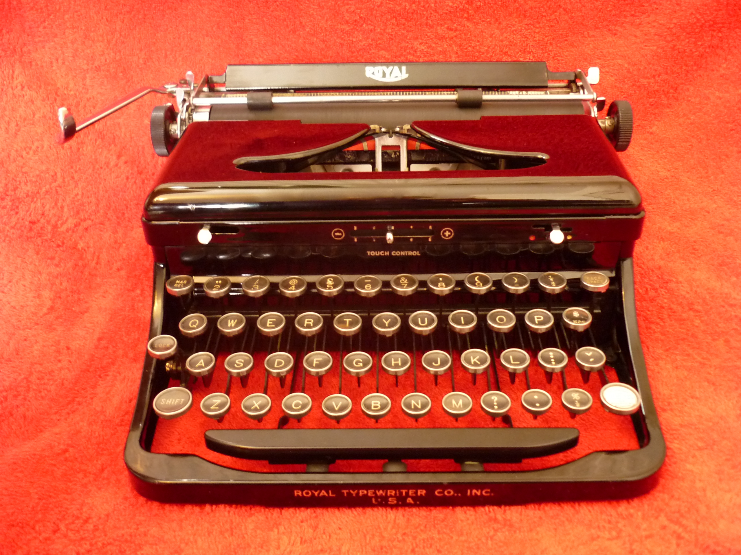 Amongst the American typewriter manufacturers, Royal was very late to the market with their first portable. Whilst Corona popularised the concept of a small typewriter that could be taken and used anywhere, and Underwood and Remington jumped onto the bandwagon in the early 1920’s, Royal bided their time – only introducing their first portable in 1926. However, having learned from the mistakes of the others, when Royal did get into the portable market it was with a machine that was well thought out. The result was that it was immediately successful and started to take sales from the others. That first machine was called the Model ‘P’ – possibly P for Portable and also because the serial number always began with that letter. Production continued throughout the 1920’s and into the 1930’s, but not to sit on their laurels, Royal developed and launched a more modern variant, the Royal Standard Portable in 1932. Known to typewriter collectors today as the ‘Model O’ from the first digit of its serial number, it became the mainstay of the Royal range throughout the 1930’s. The basic mechanism was later evolved into the famous Royal Quiet De Luxe which by the 1950’s had become one of the best selling American portables of all time.