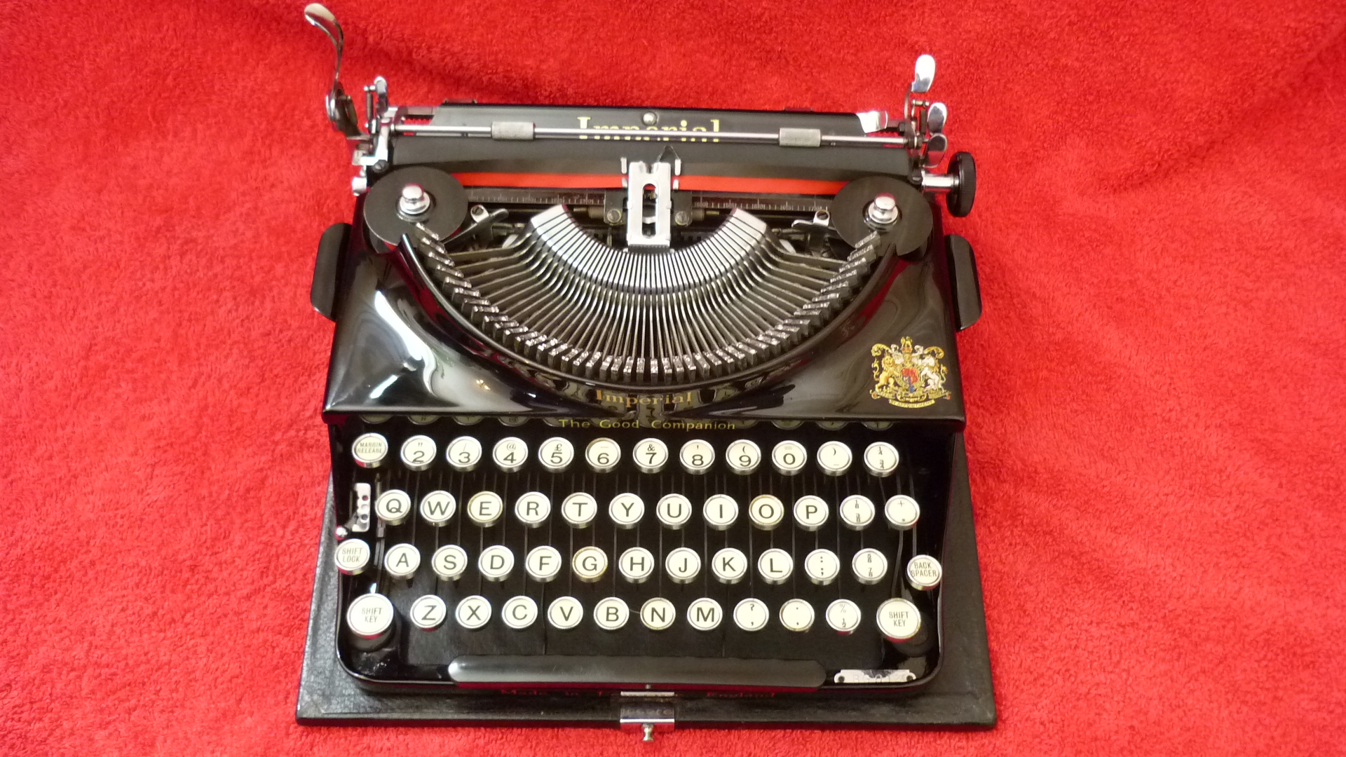 The story of the original Imperial Good Companion is an interesting one. Until the early 1930's, the Imperial Typewriter Company of Leicester specialised in office typewriters. They had launched the very successful Imperial 50 in 1927, and were now hungry to get a slice of the portable typewriter market too. As a toe in the water, they approached Torpedowerke in Germany and bought a number of kits of parts to assemble one of their designs. Unsure if these would sell, and wanting to distance themselves if they didn't, they were sold as the 'Mead' portable. They needn't have worried. The prototype 'Mead' sold well and proved to be a good machine. So good, in fact that Imperial bought the rights to manufacture and all the tooling to make it themselves. All the threads were changed from German metric to British BA threads to make the fastenings uniform with the office typewriters, but it was otherwise much the same. At about the time that Imperial wanted to market their 'new' portable typewriter, the J B Priestley play, 'The Good Companions' was making headlines. Imperial wrote to Priestley asking permission to name their machine 'The Good Companion'. Permission was granted and it became what must have been one of the first examples of 'cross marketing., with the typewriter advertising the play and the play advertising the typewriter. I think Imperial got a good run for their money because not only was a version of this typewriter still being made well into the 1960's, they were still calling it the 'Good Companion' too - by the 1960's it was the 'Good Companion Six' !