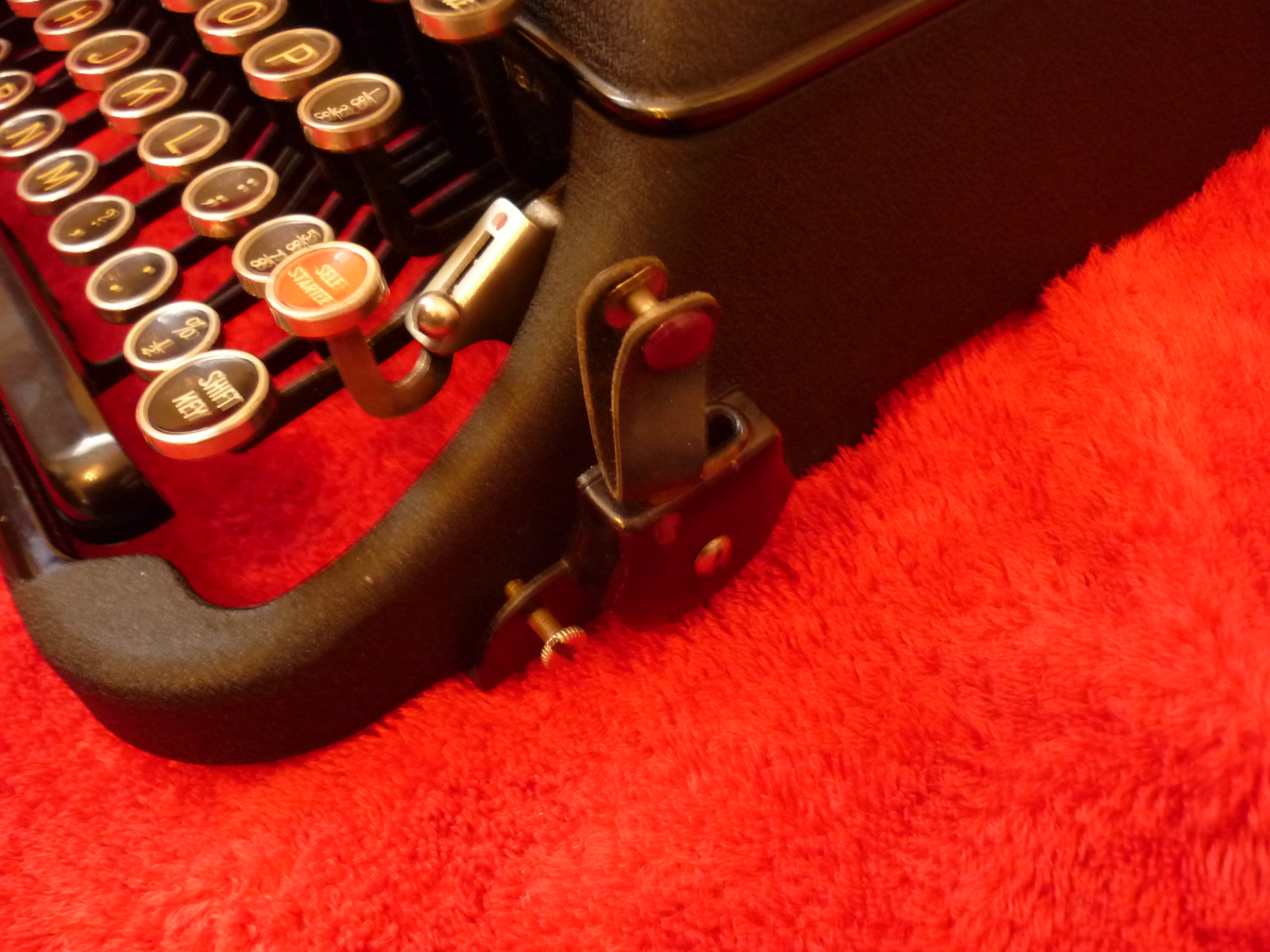 The customer who brought me this machine, had been given it. The previous owner thought that they would strip it down and clean it and had taken off and/or disturbed many of the mechanisms. There were parts and screws in plastic bags and the carriage had been removed. It was quite a challenge, especially as some parts had been lost altogether and others damaged. It was rather like the old Morecambe and Wise sketch in which Eric says that he IS playing the right notes, but not necessarily in the right order ! In this case a lot of the screws were present, but not necessarily in the right holes ! Once properly reassembled and adjusted, together with new rubber parts, it turned out to be a nice typewriter. Even though she was a 1920’s girl in 1940’s clothes !