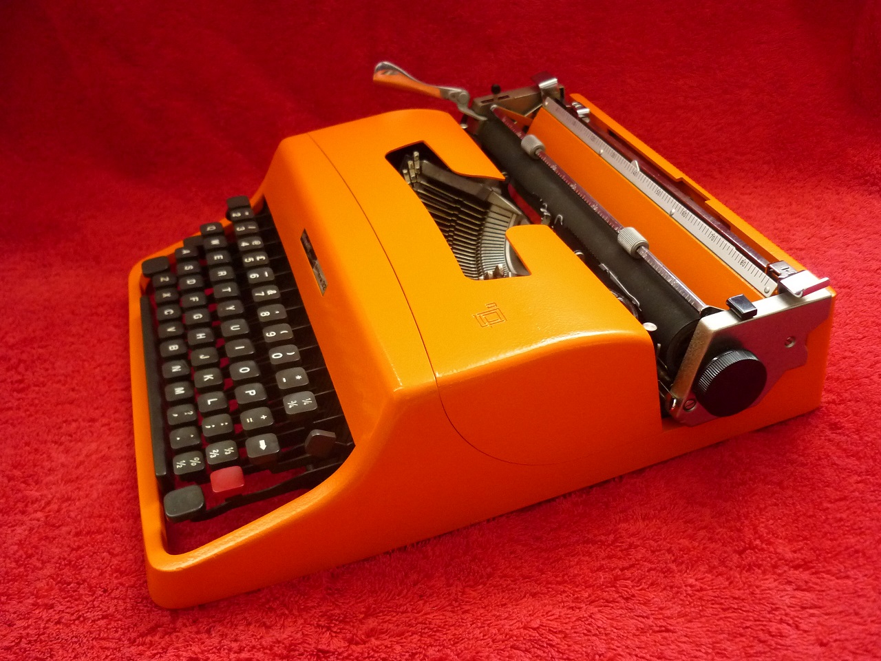 The Olivetti Lettera 32 portable probably doesn't need much of an introduction. Introduced in 1964, the appearance hardly changed until production ended in the 1980's. It spawned a whole range of mechanically similar Olivetti portables, often with a radically different 'look', and was one of the most successful Olivetti products. These machines all left the Olivetti factory in light blue. In fact, rather like the legend about the Ford Model T that you could have in any colour as long as it was black, you could have the Lettera 32 in any colour as long as it was blue !