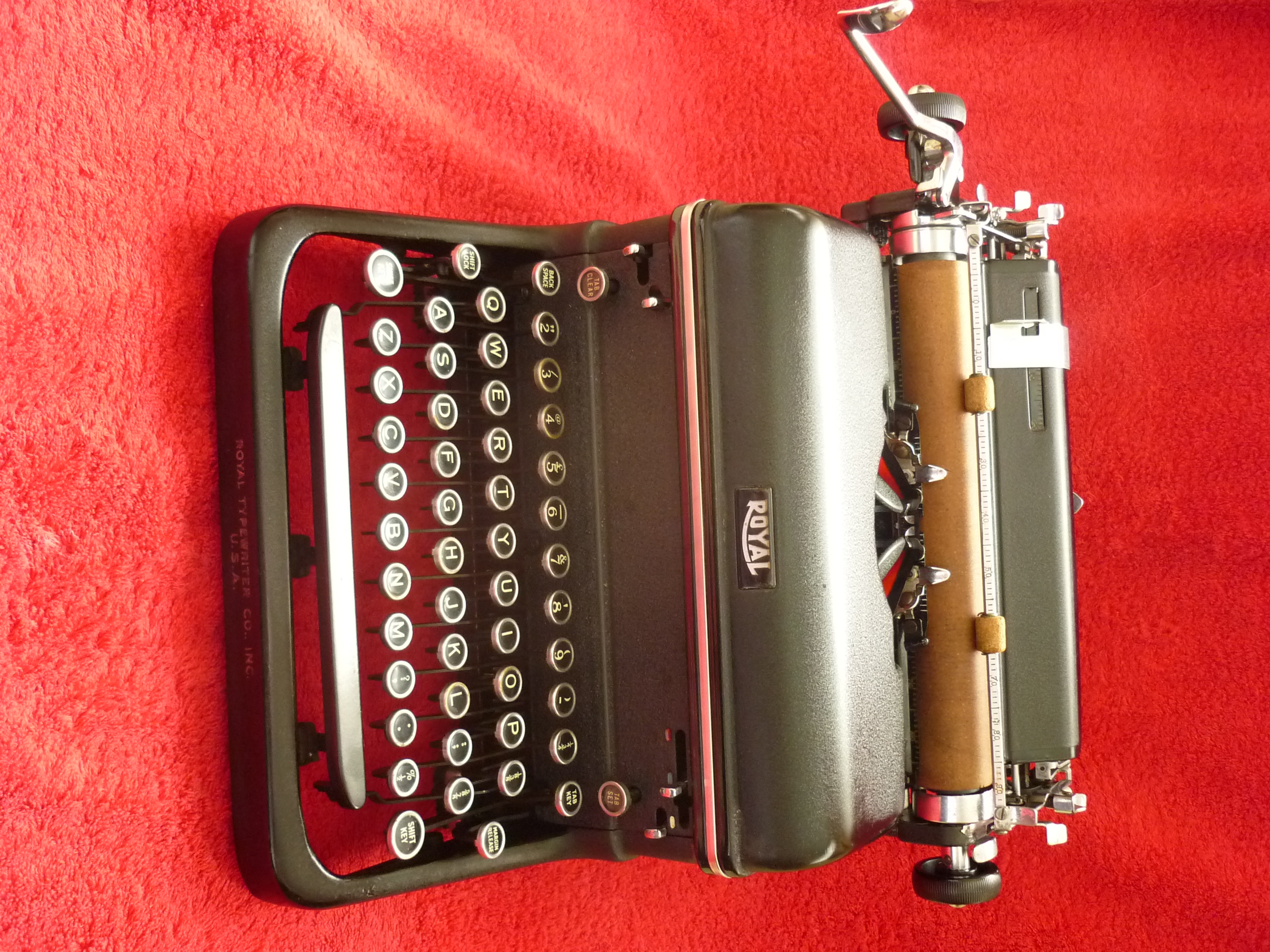 In 1932, Royal produced a lightly-warmed-over version, the Royal Model H. Then in 1938, an updated model KHM came on line, which featured a crackle-black finish and for the first time - a rounded cover to hide the ribbon spools ! With a break in production during World War Two, the KHM soldiered on until 1949.