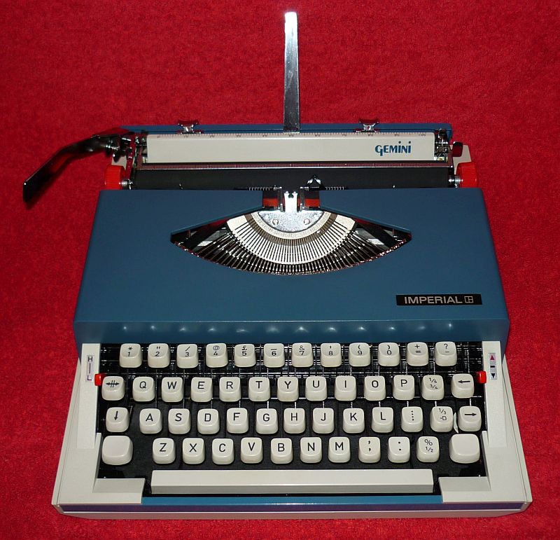 Litton did what they could to present an attractive and marketable range of portable typewriters, and one thing that was tried for about eighteen months was a typewriter with a Long Wave/Medium Wave radio in the carry case lid - hence the name 'Gemini' - two appliances in one! Novelties like this were primarily designed to appeal to the American market, but because the range was common with the UK, a few 'Geminis' were sold here as 'Imperial' models. I do not have the production figures, but I would imagine the numbers sold circa 1971 could only have been in the low hundreds. Thus, the machine that you see in the photo is incredibly rare. In fact, in over forty years of being in the typewriter trade, this is the only one that has ever passed through my hands!