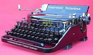The Noiseless typewriter isn't silent of course, but is much quieter than a 'normal' typewriter - mainly thanks to its unique thrust action. The plungers (which replace the usual typebars) are propelled most of the way towards the page by the typist's fingers, after which momentum takes over to allow the typeface to travel the rest of the way. The result is a dull 'thud', rather than the usual 'thwack' as the character is typed. Since the sound of a large typing pool in full spate can be almost deafening, a quieter typewriter always seemed like a good idea. The problem is simply human nature. A typist who is used to an ordinary typewriter will find the Noiseless mechanism most disconcerting. There is no proper 'feedback' to judge how hard the character has been hit and the keyboard therefore feels 'mushy'. It isn't mushy of course, but it is too 'different' for some. The typewriter trade didn't like them either because they were too different to a normal typewriter, and few engineers knew how to repair them properly.
